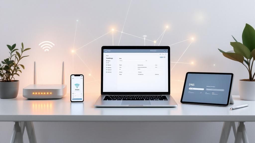 Cambiar los DNS de tu conexión a internet es uno de esos trucos sencillos y brutalmente efectivos que puedes aplicar ahora mismo. En pocas palabras, al usar un servidor DNS público como el de Google (8.8.8.8) o el de Cloudflare (1.1.1.1), le estás dando a tu conexión una ruta más directa y segura para llegar a los sitios que visitas todos los días.